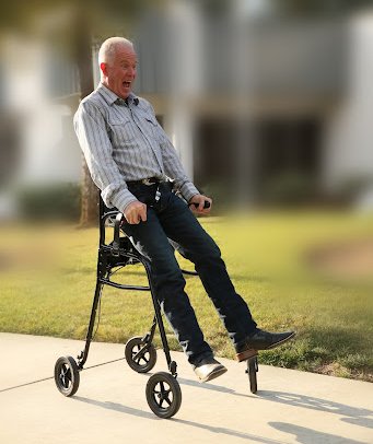 Like a walker, unlike a walker. The only walking aid that will keep you from falling even if you lose your grip or footing.