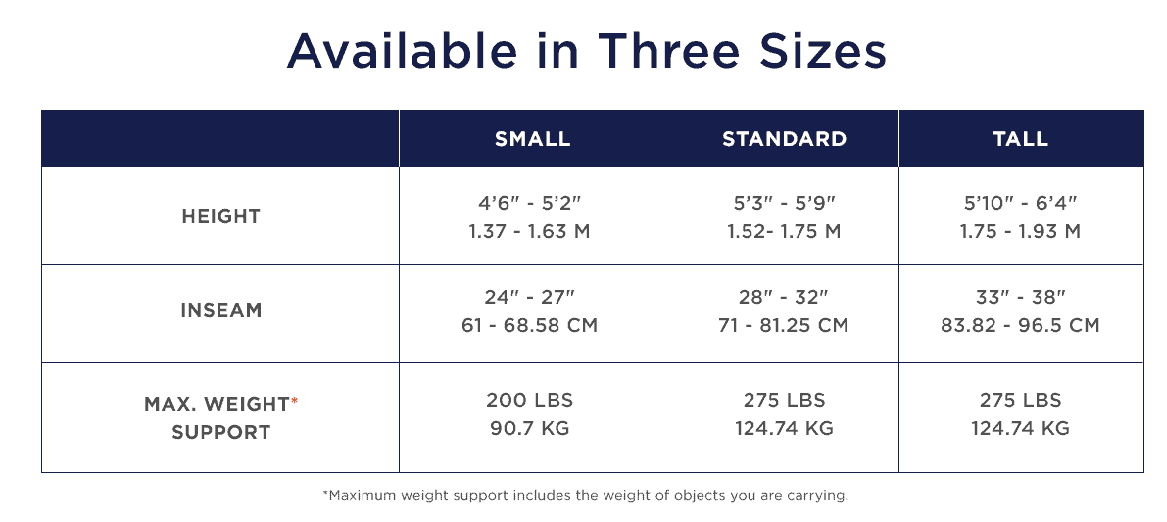 Measure your inseam to determine the right size for you. Visit the How It Works page for tips on measuring your inseam. If you fall between two sizes, select the next size up as people get “taller” after using the LifeGlider for a time.